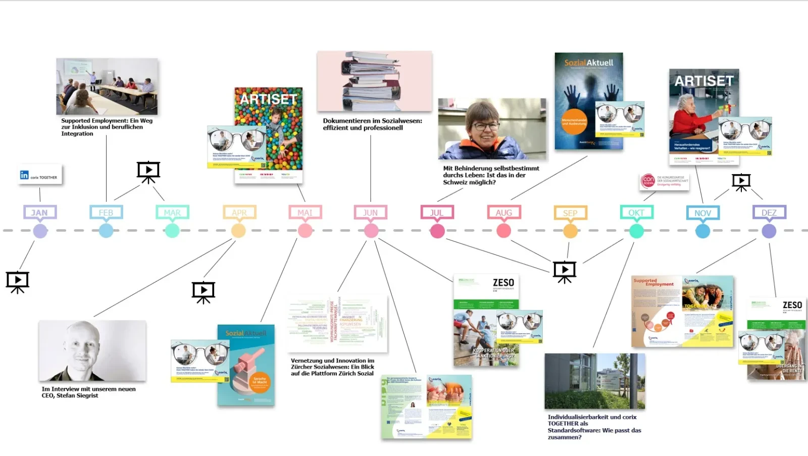 Mit Printinseraten in den Fachmagazinen Artiset, SozialAktuell und der ZESO sowie unserem zweimal jährlich erscheinenden Newsflash haben wir auf uns aufmerksam gemacht. Spannende Interviews und Austauschgespräche mit Persönlichkeiten aus dem Kundenbereich und auch aus anderen Institutionen oder Bildungsstätten fanden statt. Teile dieser Gespräche mündeten in Blog-Beiträgen. Allen Personen, die zu den Blog-Artikeln beigetragen haben, danken wir hiermit nochmals herzlich.