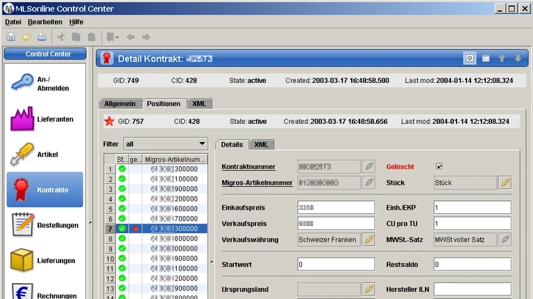 Unter der Bezeichnung MLSonline Control Center haben wir im Auftrag der Software AG eine Rich-Client-Applikation für die Support Teams von Migros und Software AG entwickelt. Mit Hilfe dieser Applikation können die Mitarbeiter des Teams "Supply Chain Support" von Migros sowie des Applikationssupports von Software AG alle wichtigen MLSonline-Dokumente nach zahlreichen Suchkriterien auffinden, anzeigen und bearbeiten. Die Applikation erlaubt zudem, entlang der Beziehungen zwischen den Dokumenten zu navigieren. Dadurch können die Support-Mitarbeiter Anfragen effizient abarbeiten.