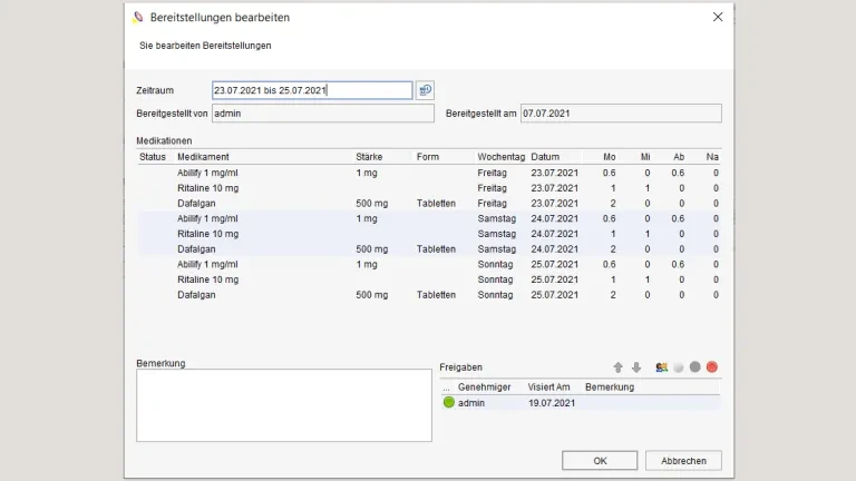 Medikationen werden mit dem 4-Augenprinzip erfasst und bereitgestellt. Dabei wird jeder Schritt in der Software dokumentiert und ist somit nachvollziehbar.